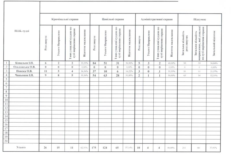 Показники діяльності суду за півріччя та рік