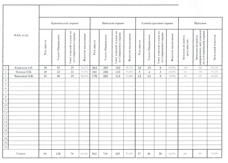 Показники діяльності суду за півріччя та рік