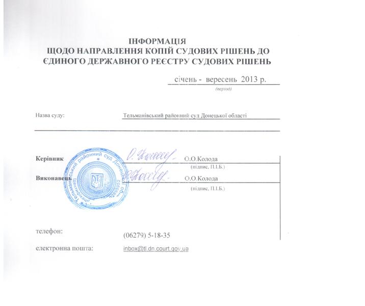 Інформація за січень - вересень 2013 року
