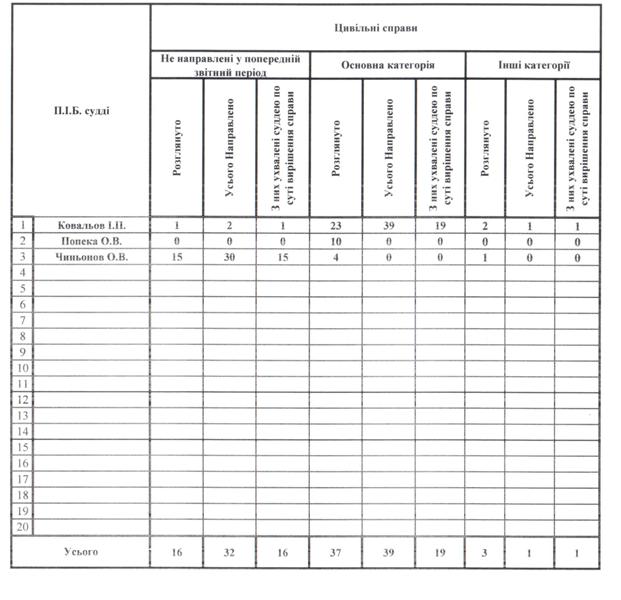 Показники діяльності суду за півріччя та рік