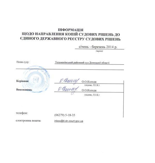 Інформація за січень - березень 2014 року