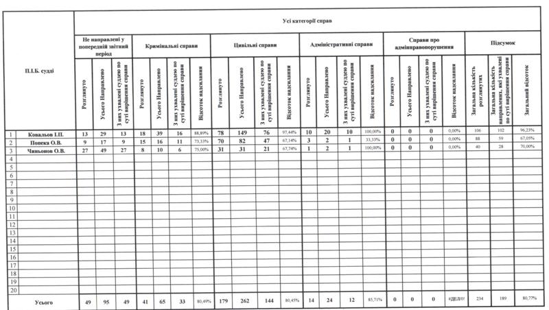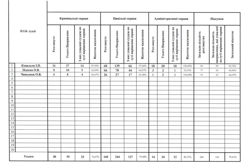 Показники діяльності суду за півріччя та рік