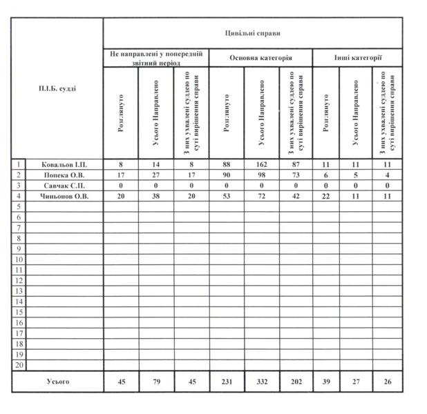 Показники діяльності суду за півріччя та рік