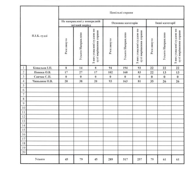 Перелік затверджених наказом голови суду документів, що містять службову інформацію